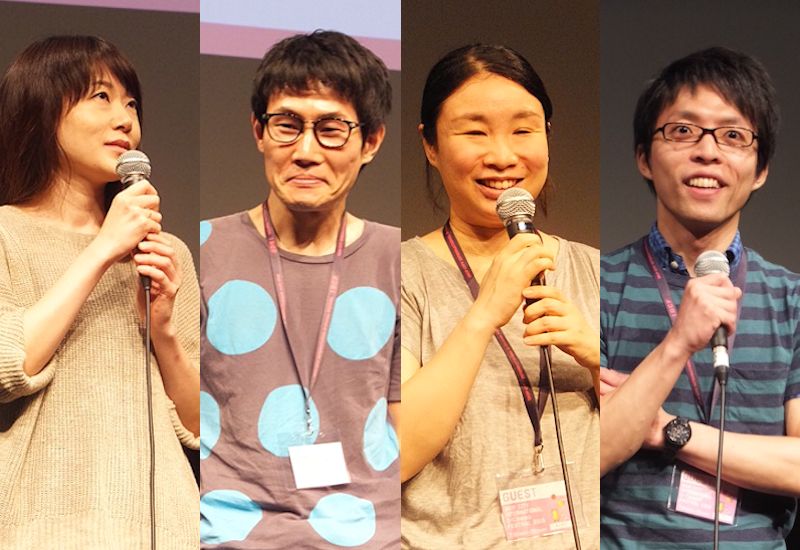 左から『これからのこと』主演女優の坂倉奈津子さん、マキタカズオミ監督。『オンディーヌの呪い』の甲斐さやか監督。『きらわないでよ』の加藤大志監督