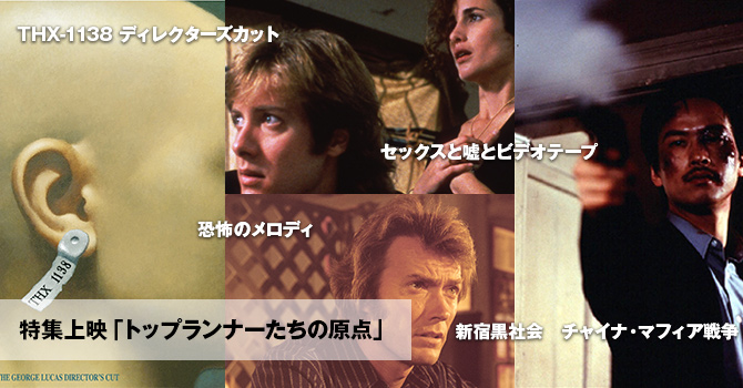 今年の特集は、国内外で高く評価され、映画史に名を刻む4人の巨匠、ジョージ・ルーカス、クリント・イーストウッド、スティーヴン・ソダーバーグ、三池崇史監督が若き日に手掛けた意欲溢れるデビュー作を一挙上映!スクリーンで鑑賞できる貴重な機会、お見逃しなく!